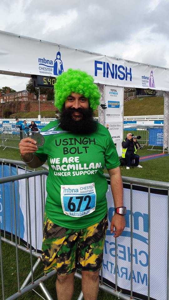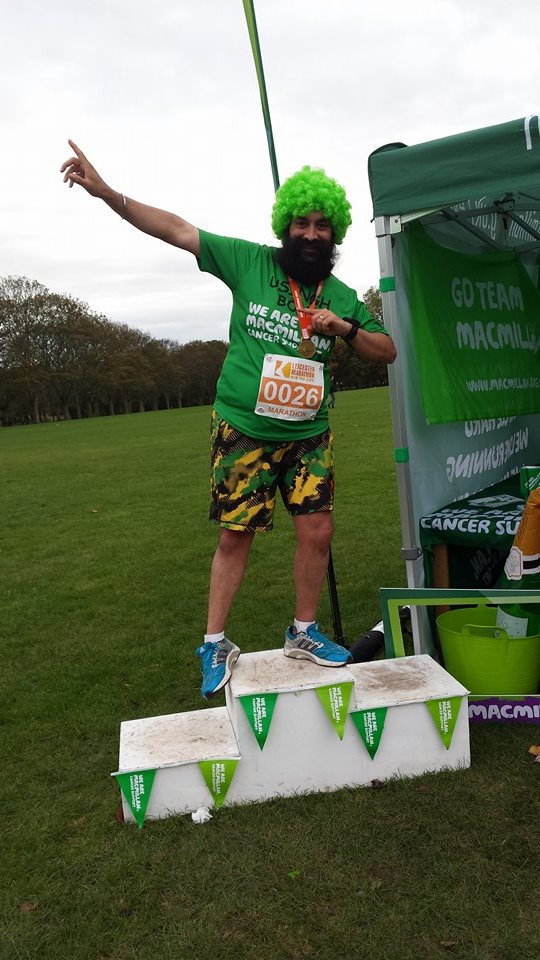 I decided to make it a double half and added Silverstone to my fundraising for TCT. At Coventry half we ran in black T-shirts provided by the company that was sponsoring all of Haroons team, Mesmereyez. For some reason I decided to run Coventry half sporting the green afro that I had worn for the 20 races of 2014. Now running in the green of Macmillan’s, the afro made sense. In 2015 though it didn’t really make sense! It was the last time I wore it, although not the last time I would sport an afro in a race! Later in 2015 I would go for a much more different look!