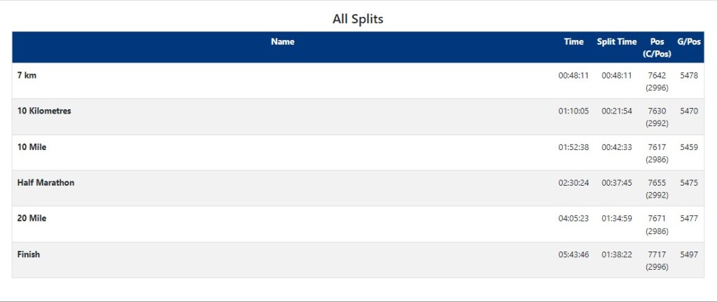 However, I knew if I could get through it, even if my time was back to the 6 hours plus of my first few ones, it didn’t matter. The focus was to finish and then look at using the next 2 races, both halfs just to re-focus before the final marathon.