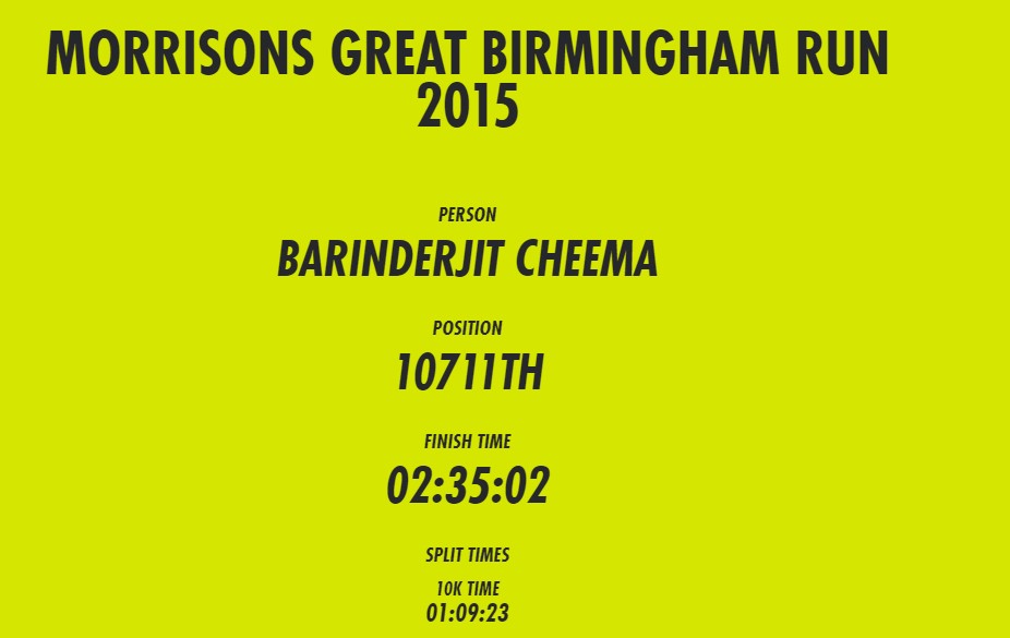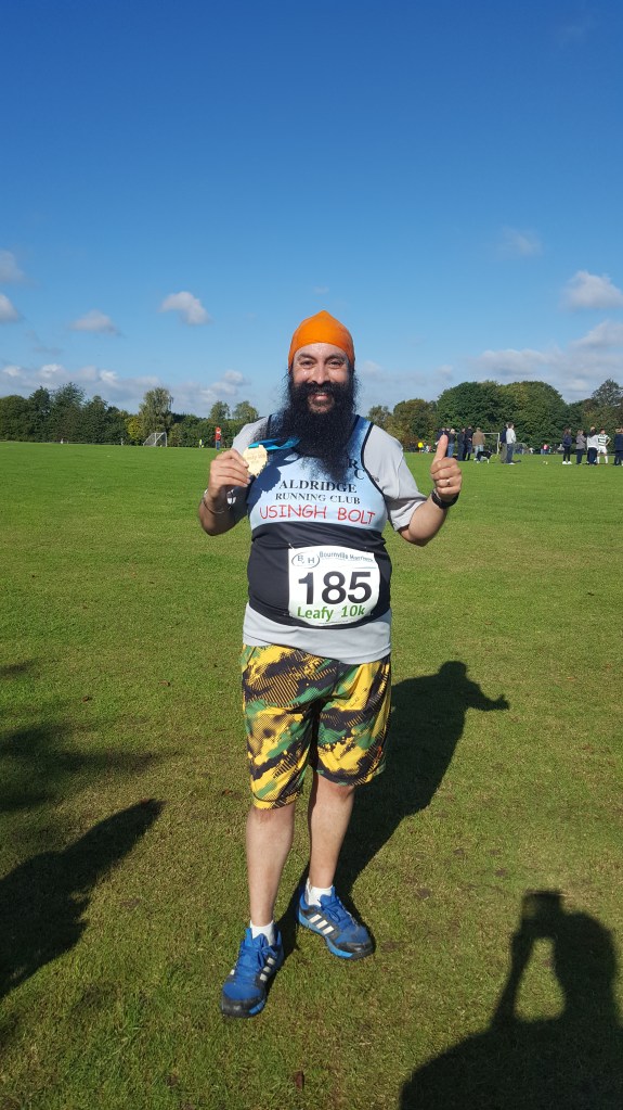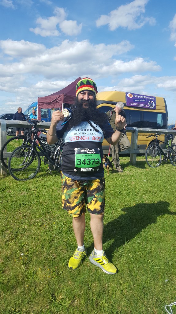 This was my 4th and final time running this version of Silverstone. This spring version doesn’t exist anymore, and it was also backed by Adidas. Now, it’s an autumn race done by another company. I don’t remember too much of this race except that in keeping with the previous 3 versions there was a little bit of rain, it got windy at times and there was a surprise musical act on the day. Punjabi dholi (Indian drum), the one and only Gurcharan Mall. Due to the nature of the course, I ran past him 3 times and then the 4th time he approached the part of the route we were on to support us. He had another 2 or 3 members of his band with him but it felt good to hear some Bhangra beats on the course.